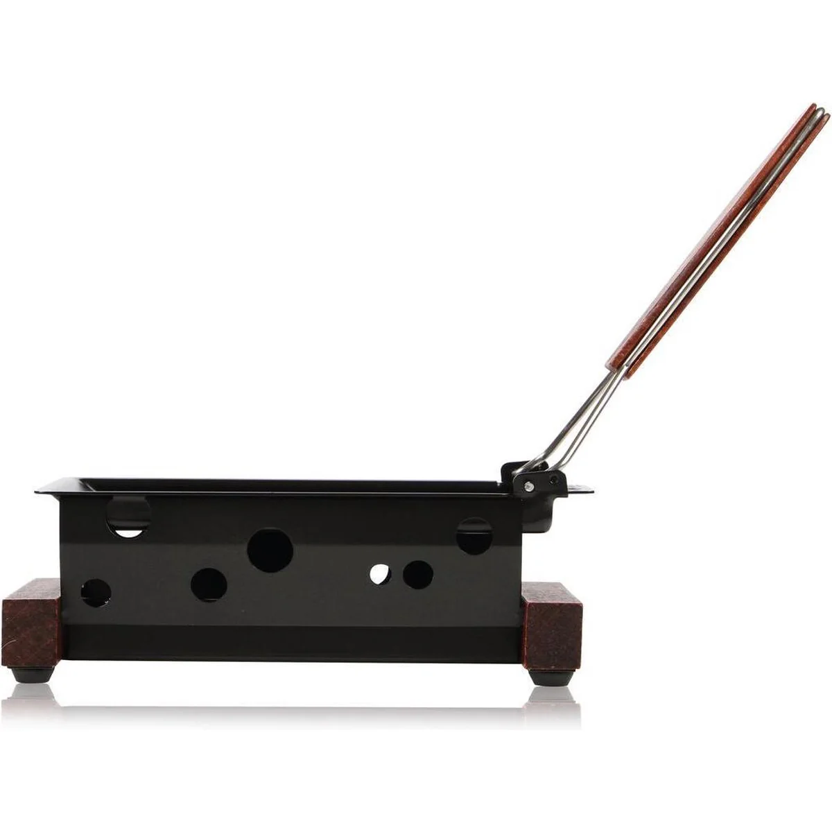 De raclette set wordt met handige spatel geleverd. De spatel past precies in het kaaspannetje (de Barbeclette®), zodat je de gesmolten kaas goed uit het bakje krijgt. In een handomdraai schuif je die o zo heerlijke gesmolten kaas op je knapperige stokbrood, je favoriete nacho’s, of toastjes.