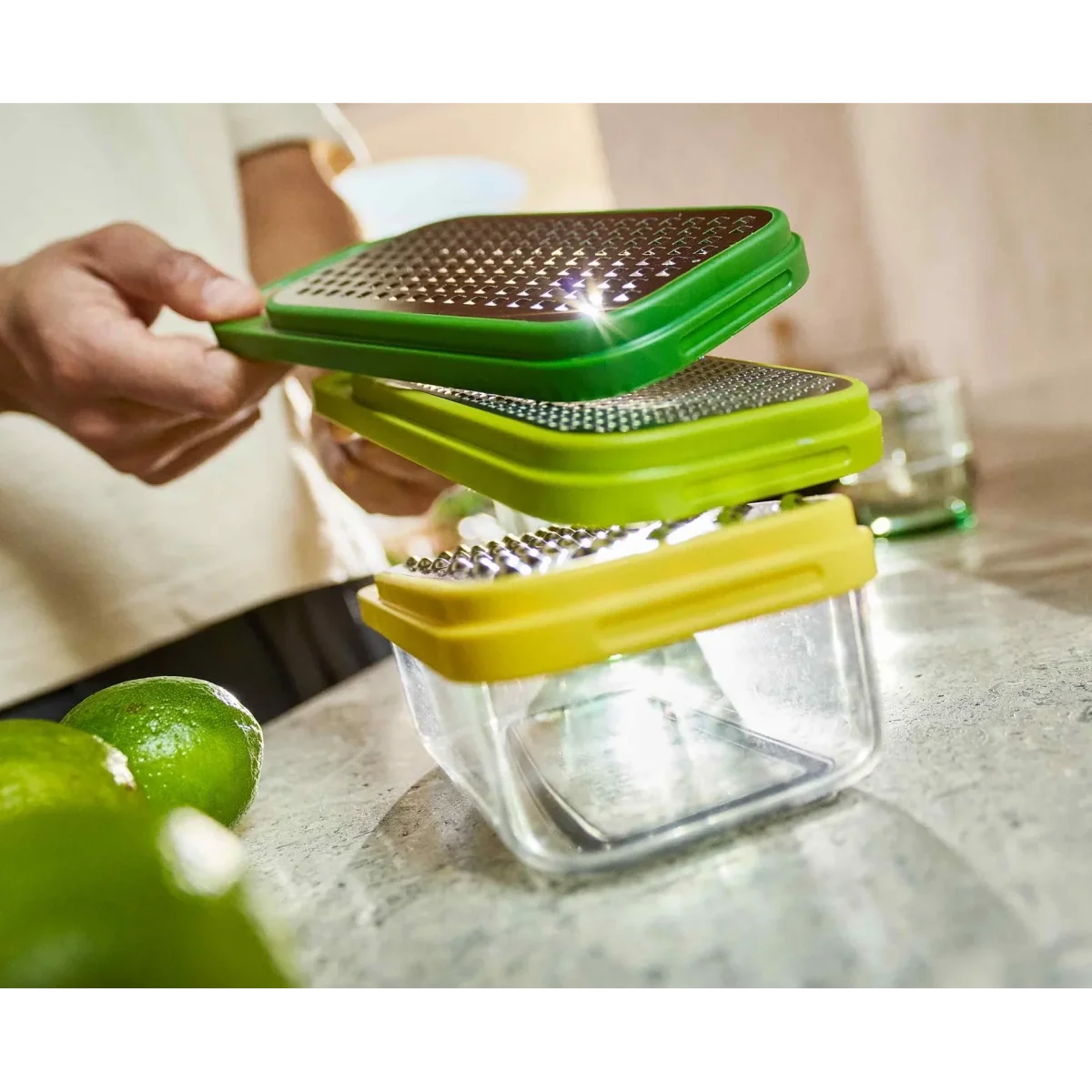 De Multi-Grate & Store rasp set is een slimme en praktische oplossing voor wie graag vers kookt tijdens het kamperen. Of je nu in je camper, caravan of op de camping staat, met deze veelzijdige rasp bereid je ingrediënten snel en zonder verspilling.