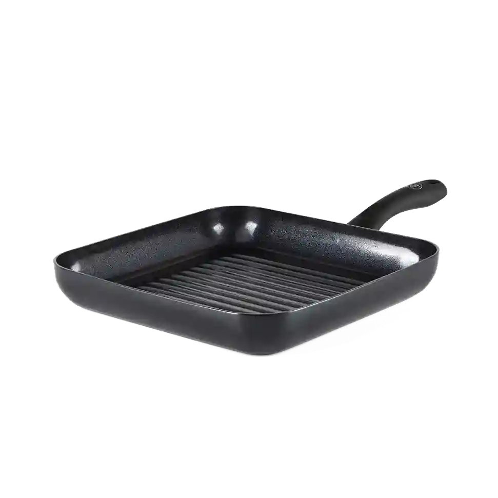 Deze grillpan is gemaakt van aluminium en warmt gelijkmatig op voor perfecte bakresultaten. Je kunt ze gebruiken op elk fornuis, ook inductie. De ergonomische stay-cool handgreep met duimafdruk zorgt voor een stevige en veilige grip.