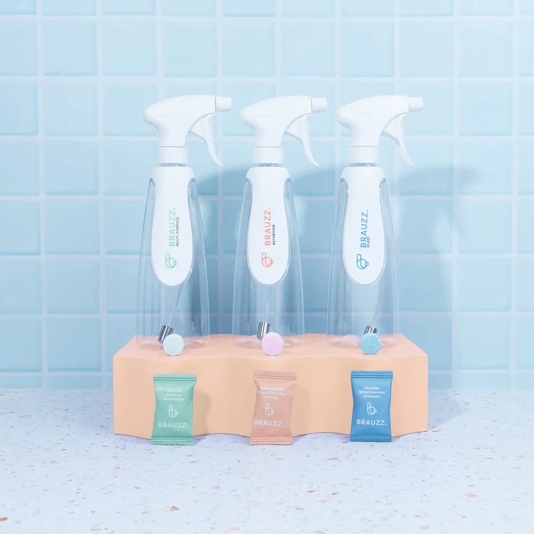 • Ingrediënten BRAUZZ. Allesreiniger: SODIUM BICARBONATE, CITRIC ACID, DODECYLBENZENE SULFONIC ACID, MALEIC ACID, PARFUM, COLORANT