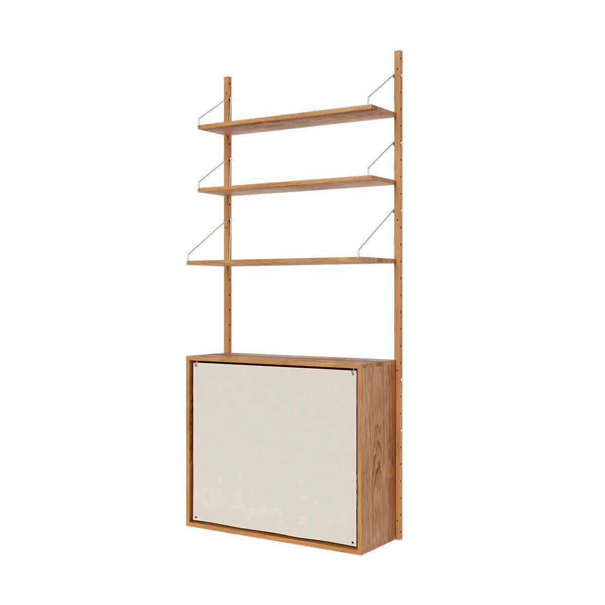 – natural oiled oak shelves and rails, stainless steel brackets and screws