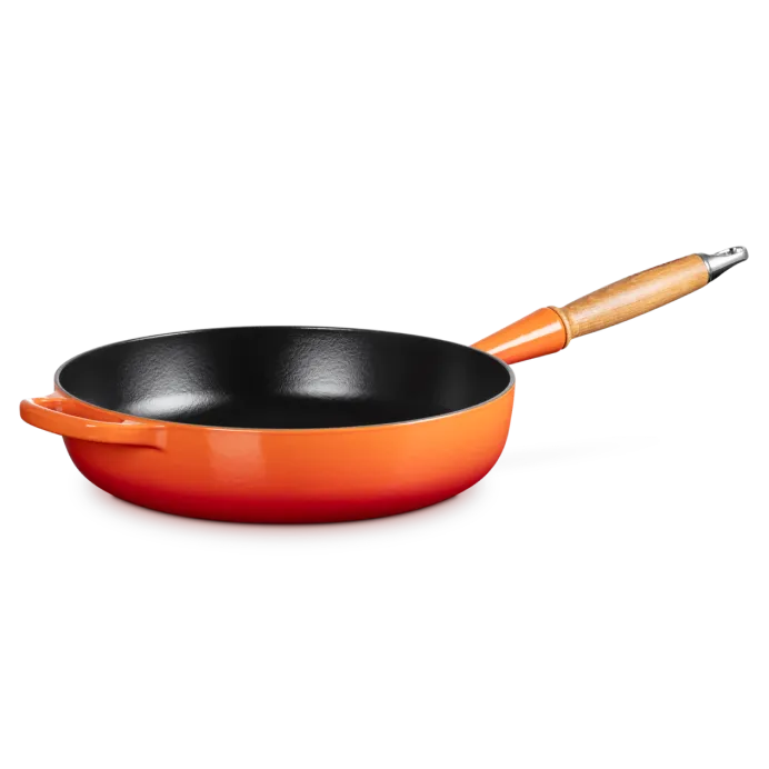 Deze Le Creuset Hapjespan Signature in het oranjerood heeft een diameter van 28 centimeter en een inhoud van 3.6 liter, dit maakt hem geschikt voor 4 à 5 personen. De pan heeft een strak, modern uiterlijk met een hoge rand. Hij is vervaardigd uit geëmailleerd gietijzer wat de warmte vasthoudt, zodat het eten gelijkmatig kan bakken en bruinen. Deze hapjespan is ideaal voor het bereiden van overheerlijke gerechten en maakt van bakken en sauteren een feestje. De pan is niet geschikt voor de oven en de vaatwasser wordt afgeraden als je het handvat wilt beschermen.