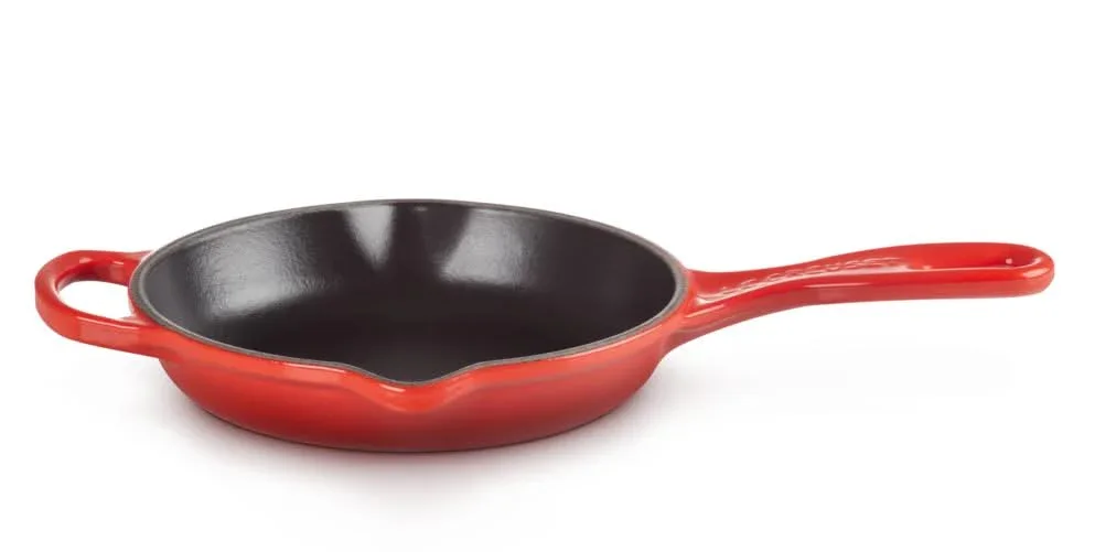 Zowel chef-koks als thuiskoks zweren bij de Le Creuset Skillet in het prachtige kersenrood. Deze koekenpan heeft een diameter van 16 centimeter en is vervaardigd uit geëmailleerd gietijzer. Dit materiaal houdt de warmte vast, zodat het eten gelijkmatig kan bakken en bruinen.