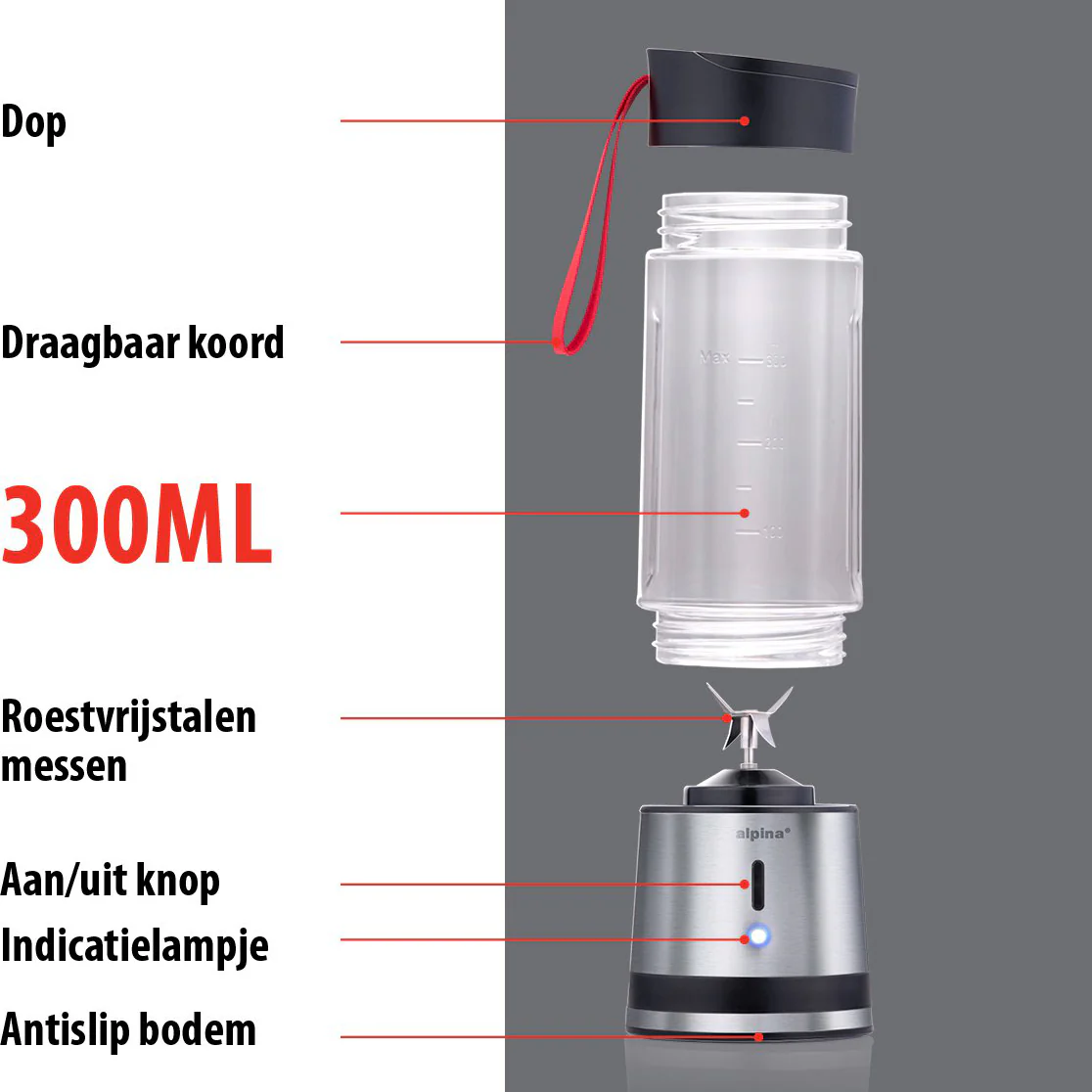 De alpina draagbare smoothie blender is de perfecte oplossing voor een gezonde levensstijl en is ideaal voor iedereen die graag verse smoothies wil maken, waar dan ook.