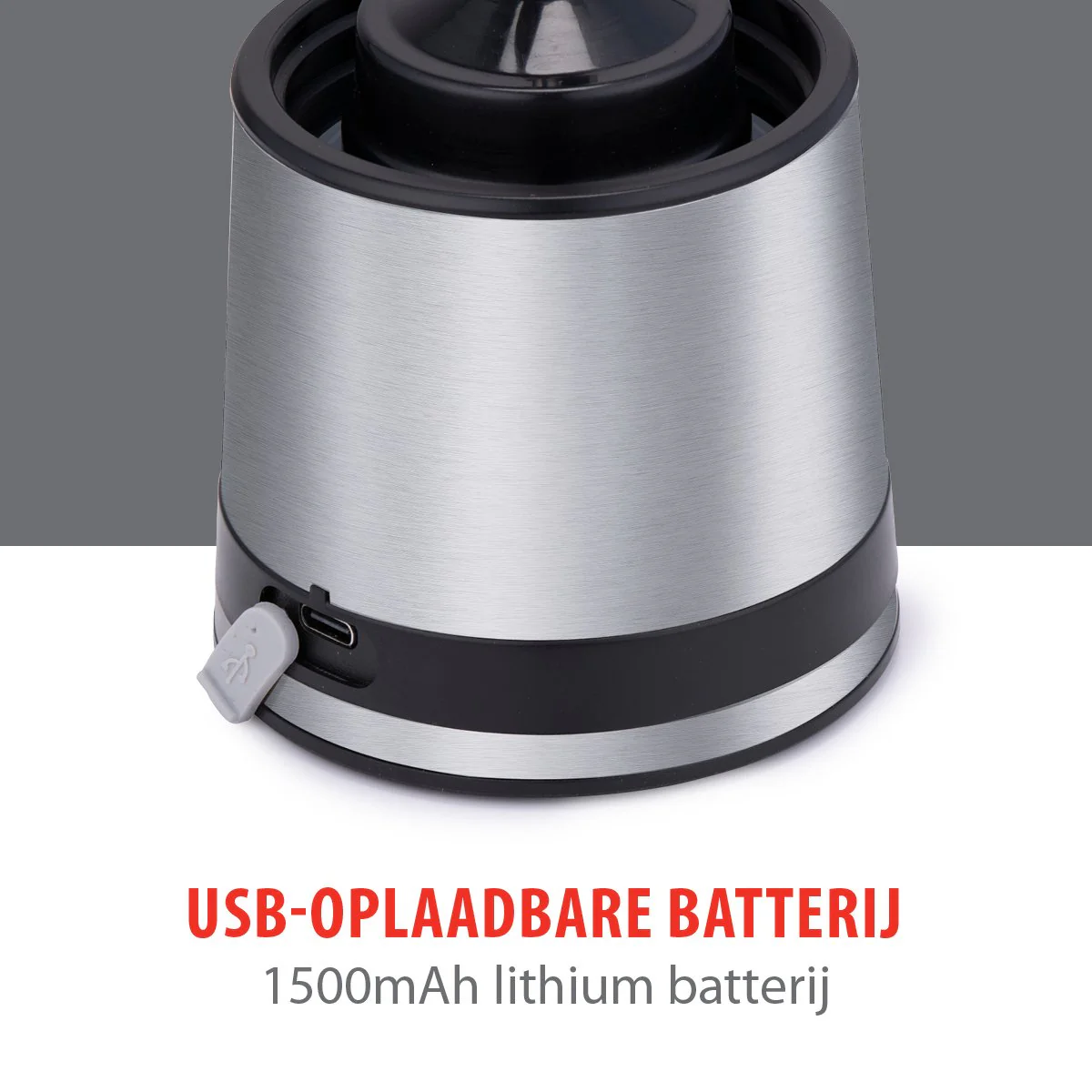 - Oplaadbaar via USB, dus geen stopcontact nodig tijdens gebruik