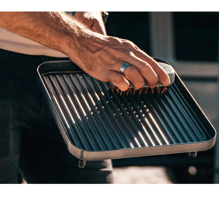 Extra handig: dankzij de opbergcassette berg je de borstel netjes en veilig op, zodat hij schoon blijft en je hem makkelijk meeneemt in je BBQ-tas of camperlade.