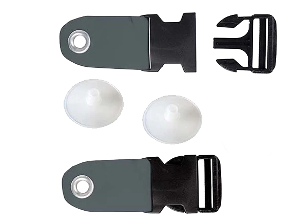 De set bestaat uit twee koppelriempjes en twee ringdopjes, waarmee je snel een geschikt bevestigingspunt creëert wanneer je luifel niet standaard voorzien is van stormbandclips.