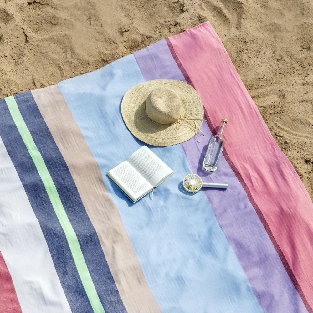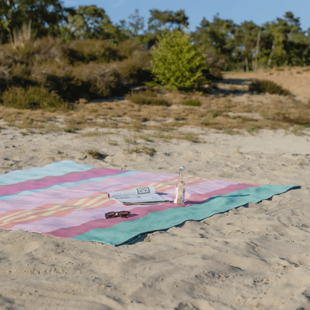 Geniet van ontspannen zomerse dagen met ons XXL strandlaken, ideaal voor gezellige uurtjes met vrienden op het strand of in het park. Dit grote strandlaken is gemaakt van lichte katoenen stof, die gemakkelijk op te rollen is en perfect past in je strandtas of fietsmand.