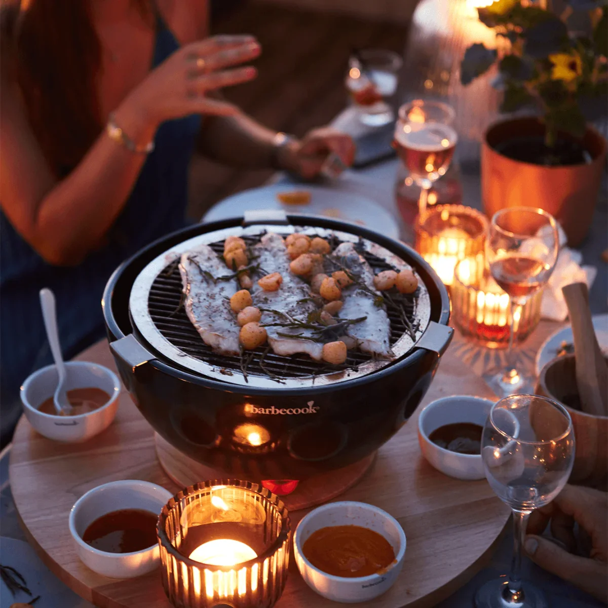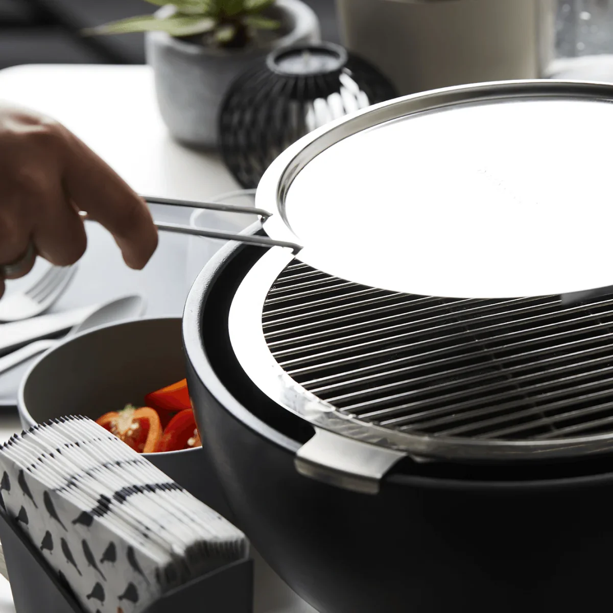 Een kleine tafel BBQ is ideaal om mee te nemen onderweg. Op de grillrooster van 31 cm kan iedereen aan tafel zelf bakken terwijl de buitenkant van de bbq niet warm wordt.