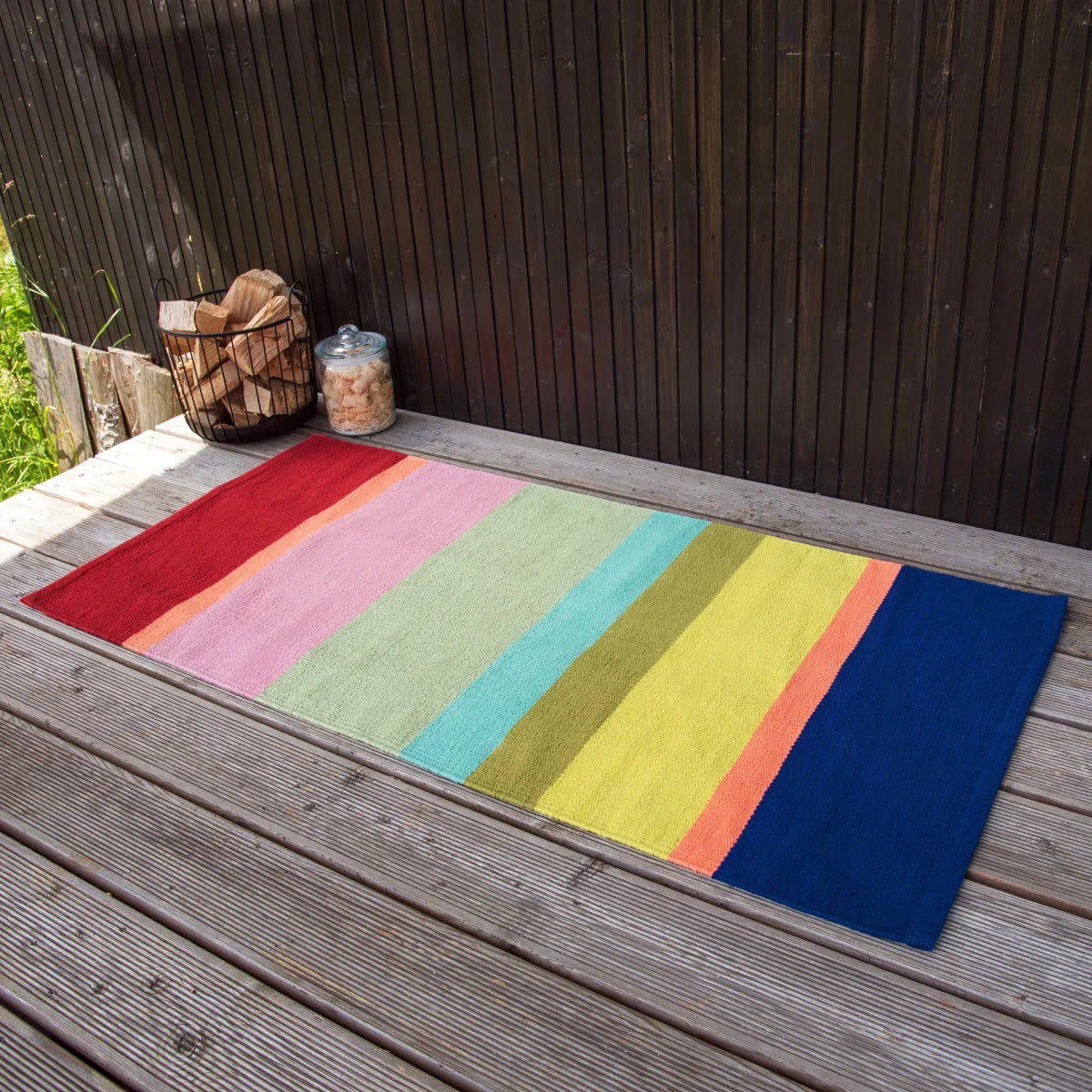 Tapijt loper met kleurrijke strepen in robuust katoen – Remember