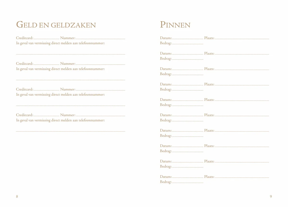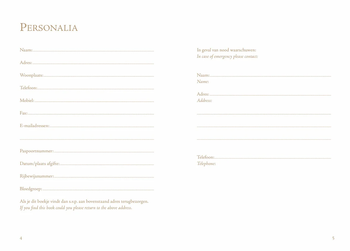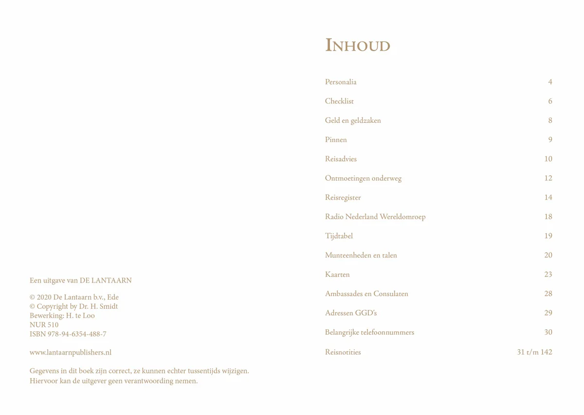 Dit prachtige Travel Reisdagboek is dé plek om al je reisverhalen en herinneringen vast te leggen, met sfeervol achtergrondpapier dat je direct in de stemming brengt. Naast ruimte om te schrijven, biedt het handige extra’s zoals een checklist, tijdtabel, kaarten, talen, munteenheden en belangrijke adressen, inclusief de contactgegevens van Nederlandse en Belgische ambassades.