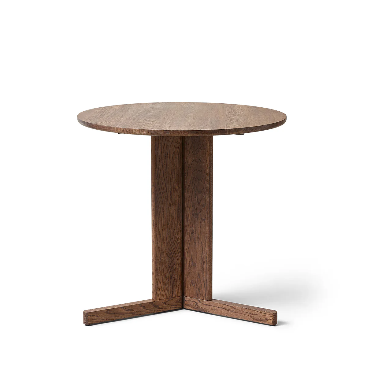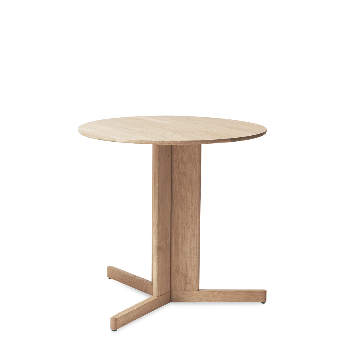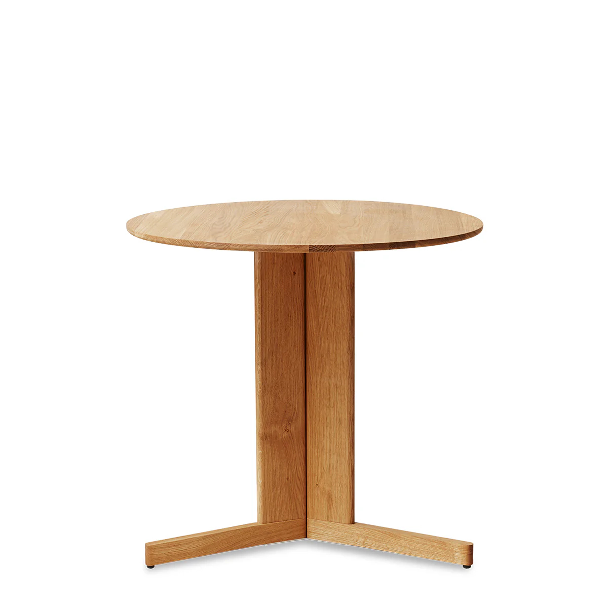 This sleek and modern Trefoil table in solid European oak is crafted for both aesthetic appeal and functionality. The table features a unique design with free-floating legs, providing extra space for comfortable seating. The smaller model rests on three legs, while the larger version features four for added stability.