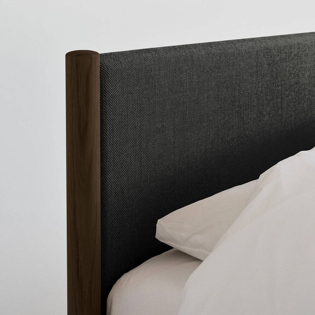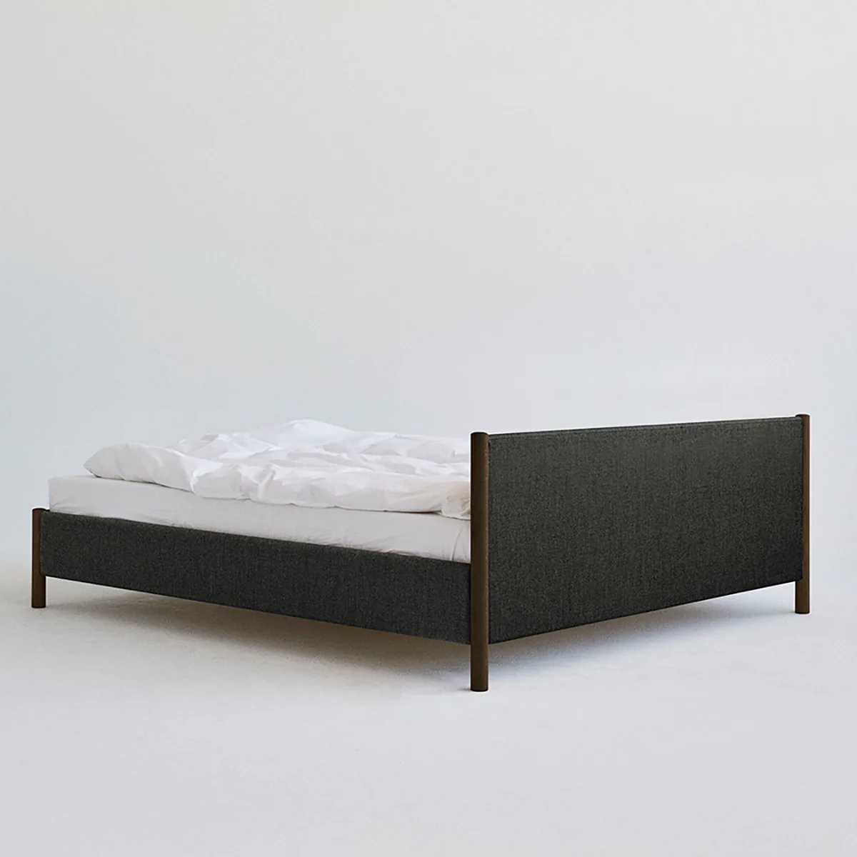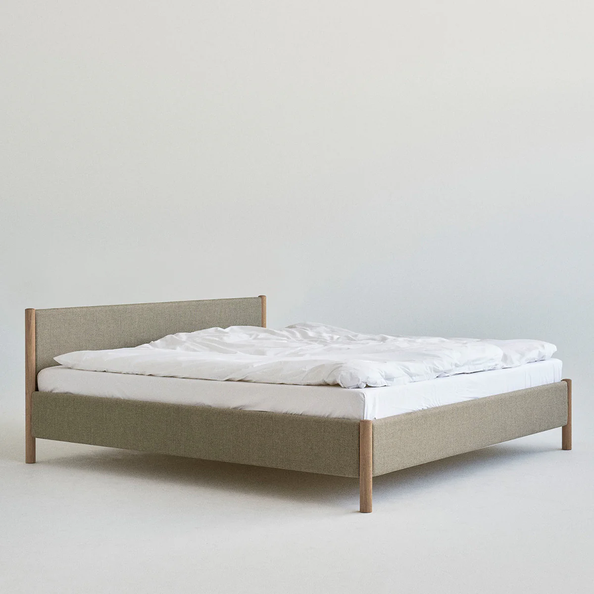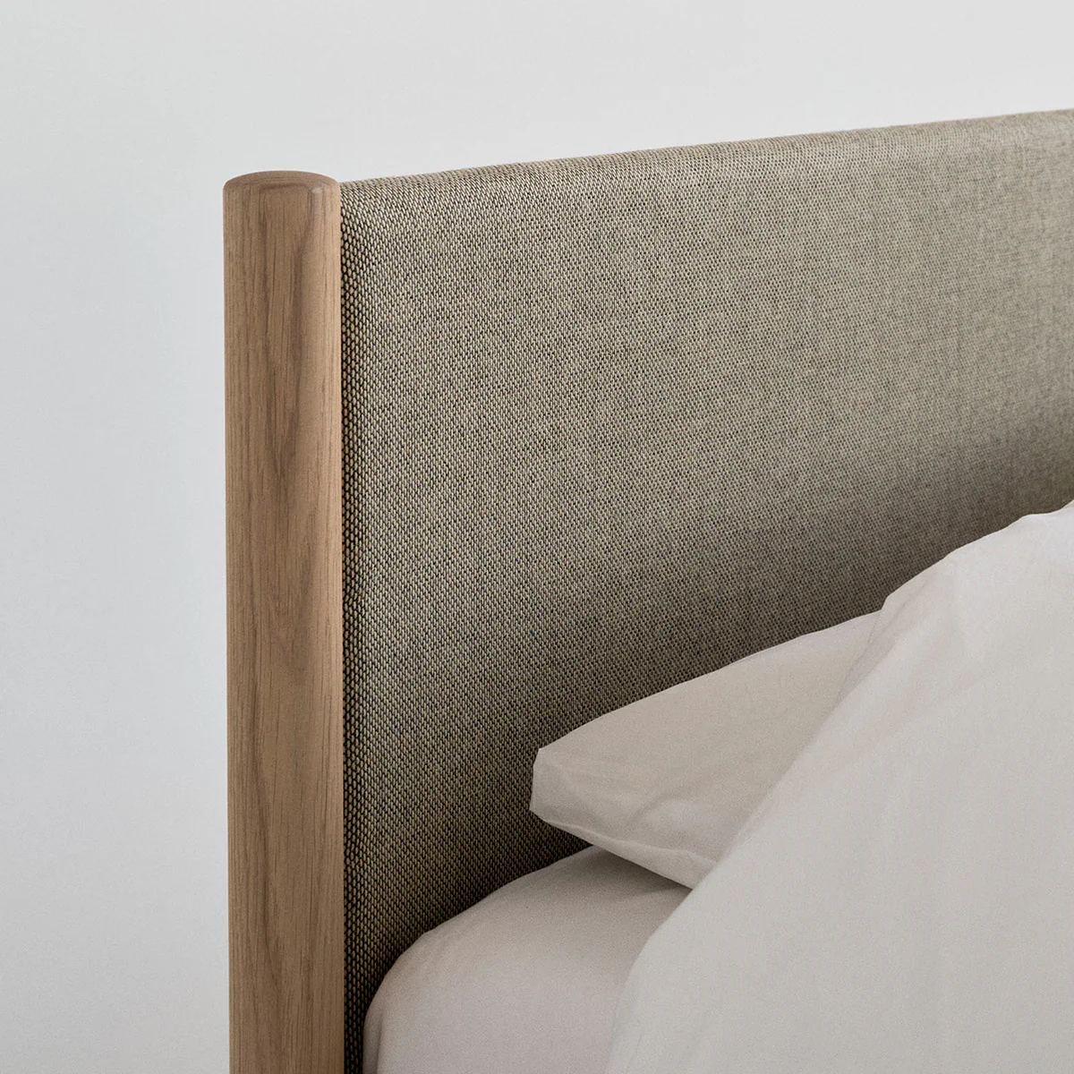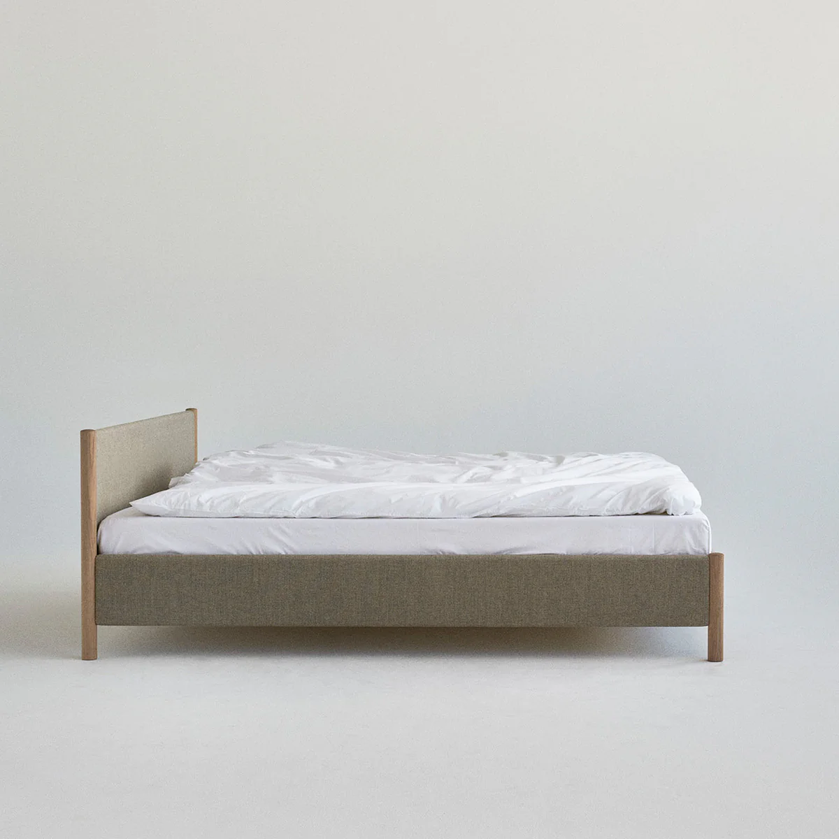 In a reinterpretation of the Veng Bed Frame, the iconic Re-wool fabric from Danish textile-manufacturer Kvadrat is introduced. Created by the award-winning textile designer Margrethe Odgaard, Re-wool is characterized by its patterns of colored stitches on a darker base, creating a rich depth and feel. The edition is available in three subtle colorways, curated with a vintage influence.