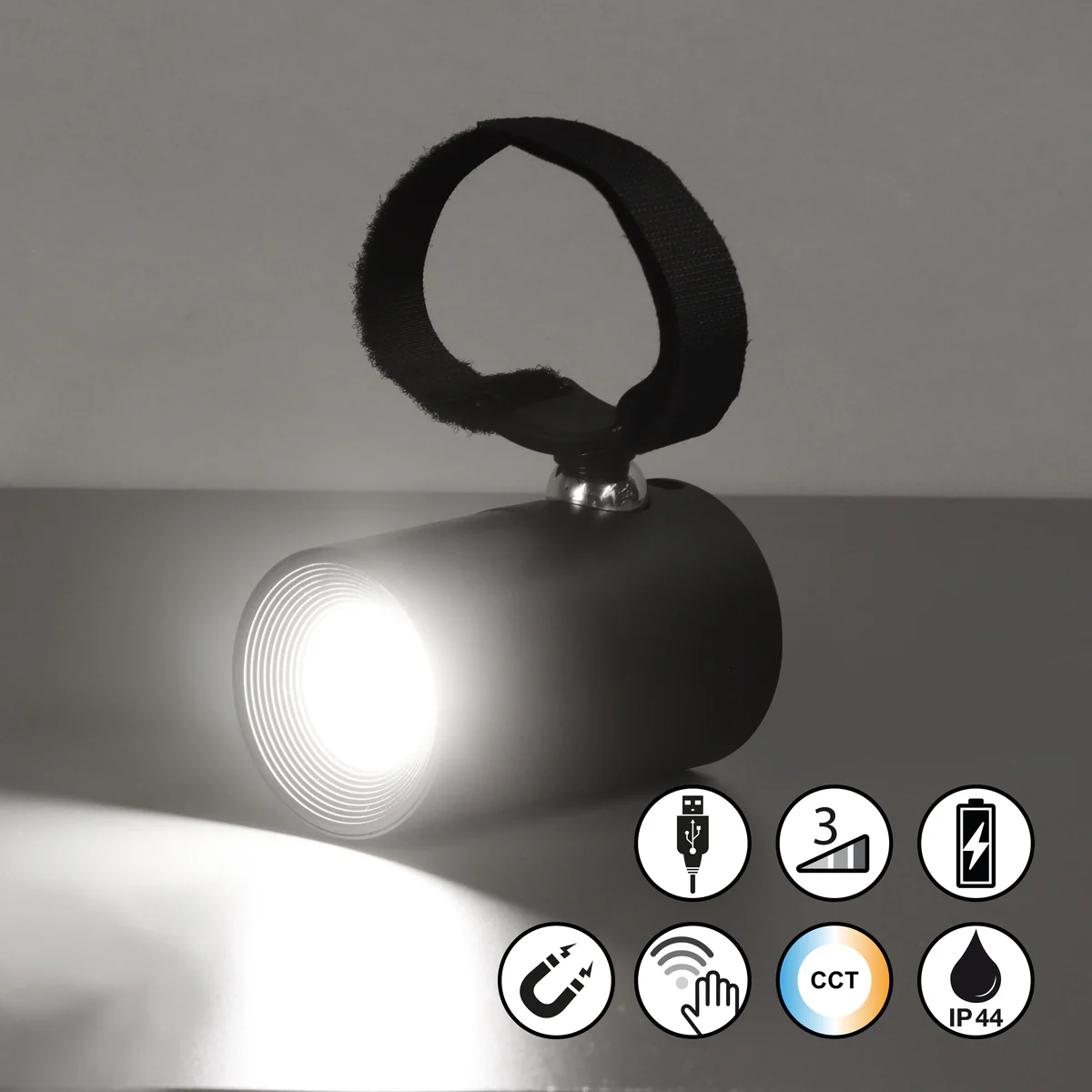 Het werkt heel eenvoudig: de houders bevatten een metalen bol, terwijl de lampen een magnetische uitsparing hebben die hier naadloos op aansluit. Zo kun je de lamp stevig ophangen, maar ook makkelijk loshalen om op te laden, op te bergen of ergens anders te gebruiken – ideaal voor zowel binnen als buiten. Alle lampen zijn voorzien van USB C opladers.