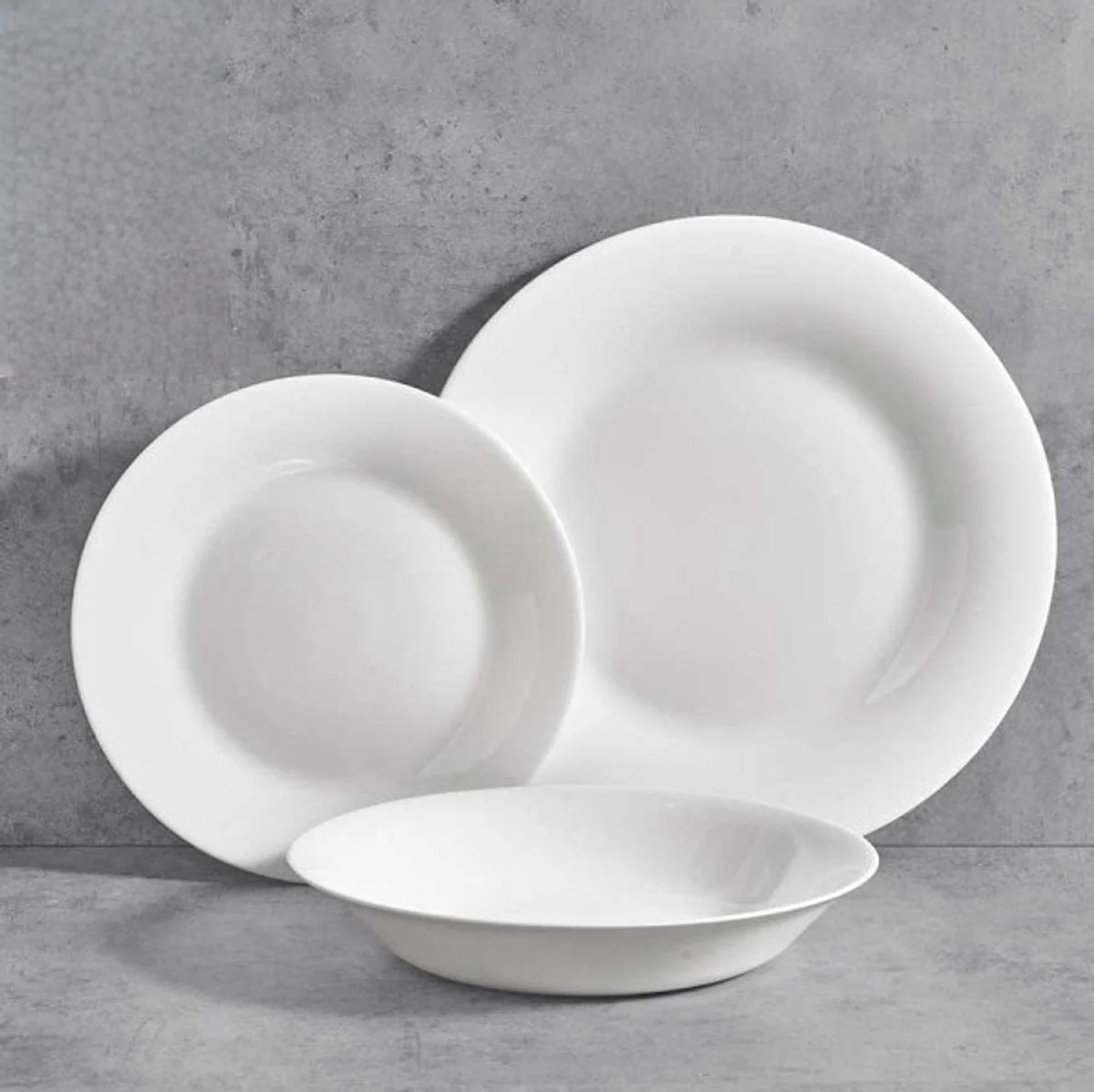 Strak design ontmoet veelzijdige functionaliteit in deze elegante 18-delige bordenset van Vivalto. Perfect voor dagelijks gebruik of stijlvolle diners, combineert deze set moderne uitstraling met professionele kwaliteit. Dankzij twee formaten platte borden én diepe borden heb je altijd het juiste bord bij de hand – of je nu een salade, hoofdgerecht of soep serveert.