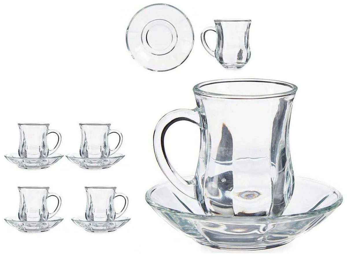 Set van 4x stuks Marokkaanse theeglazen inclusief schotel 125 ml. De glazen zijn perfect voor een heerlijke kopje thee, maar zijn ook geschikt voor koffie of andere warme dranken. Geschikt voor in de vaatwasser. Materiaal: glas. Afmeting per glas: ca. 9 x 6.5 x 8.5 cm.