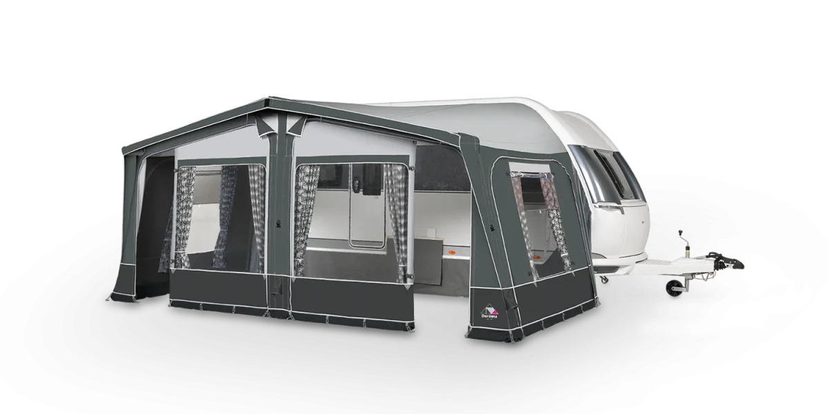 De Daytona Air is een tijdloze, volledig opblaasbare voortent die gebruiksgemak en stabiliteit combineert met een strak, modern ontwerp. Dankzij het betrouwbare luchtframe staat de tent in enkele minuten stevig en zonder traditionele stokken. Het subtiele kleurgebruik in antraciet en grijs zorgt voor een stijlvolle uitstraling die bij iedere caravan past.