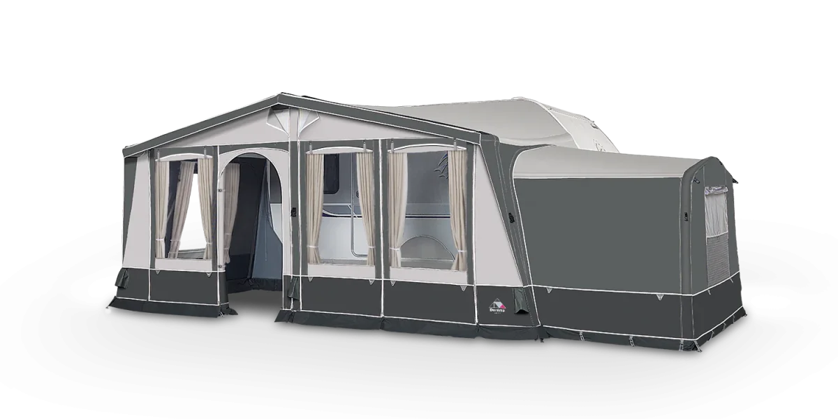 De tent is volledig vervaardigd uit extra zwaar Ten Cate All Season tentdoek, waardoor ze bestand is tegen intensief gebruik gedurende het hele jaar. Het dak heeft aan de binnenzijde een fraai dessin en de wanden zijn gemaakt van DormaTex – een sterk en stijlvol All Season-materiaal dat bijdraagt aan de exclusieve uitstraling van deze voortent.