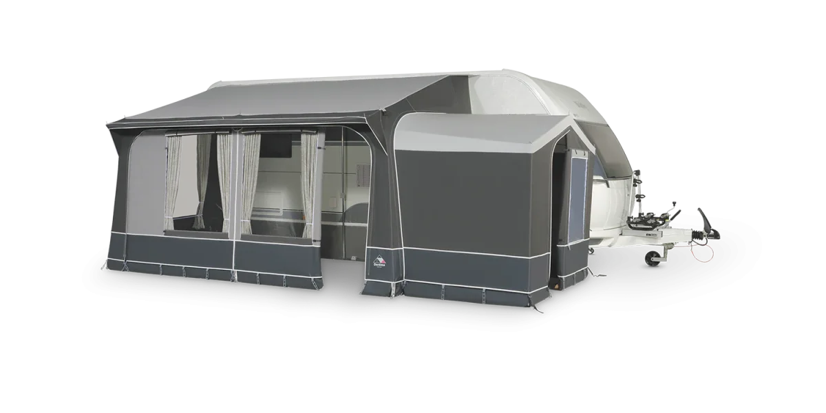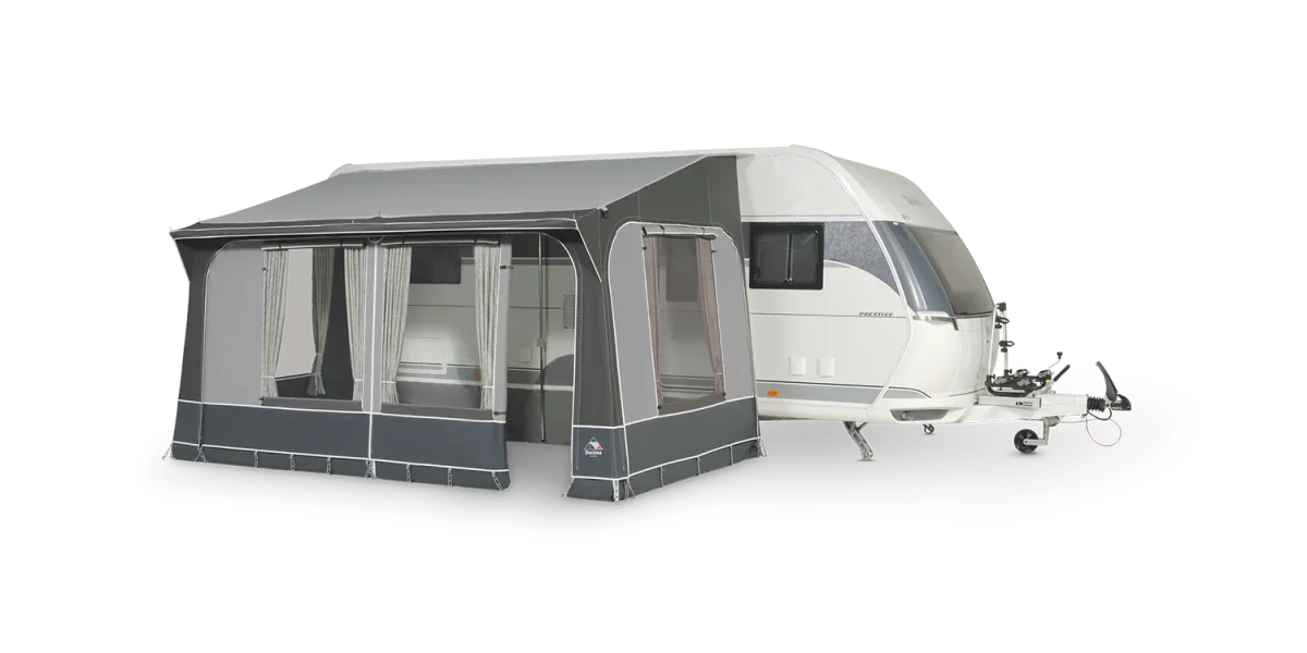 De Quartz 400 past op caravans met een rechte tentrail vanaf 360 cm en biedt met een diepte van 240 cm en peeslengte van 360 + 2 x 20 cm ruime leefruimte. De standaard aangenaaide schuimkussens aan de zijwanden zorgen voor een perfecte aansluiting op uw caravanwand. De optionele uitbouw kan zowel aan de linker- als rechterzijde geplaatst worden voor extra comfort.