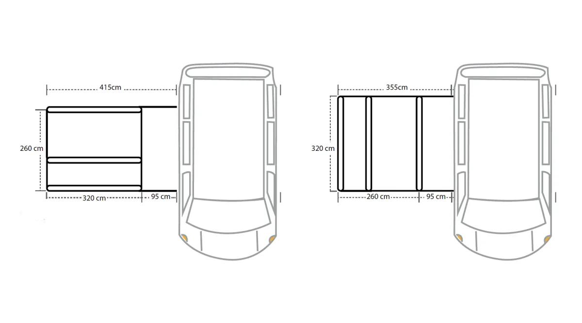 Zijwaarts met koppelhoogte tussen 240 en 270 cm
