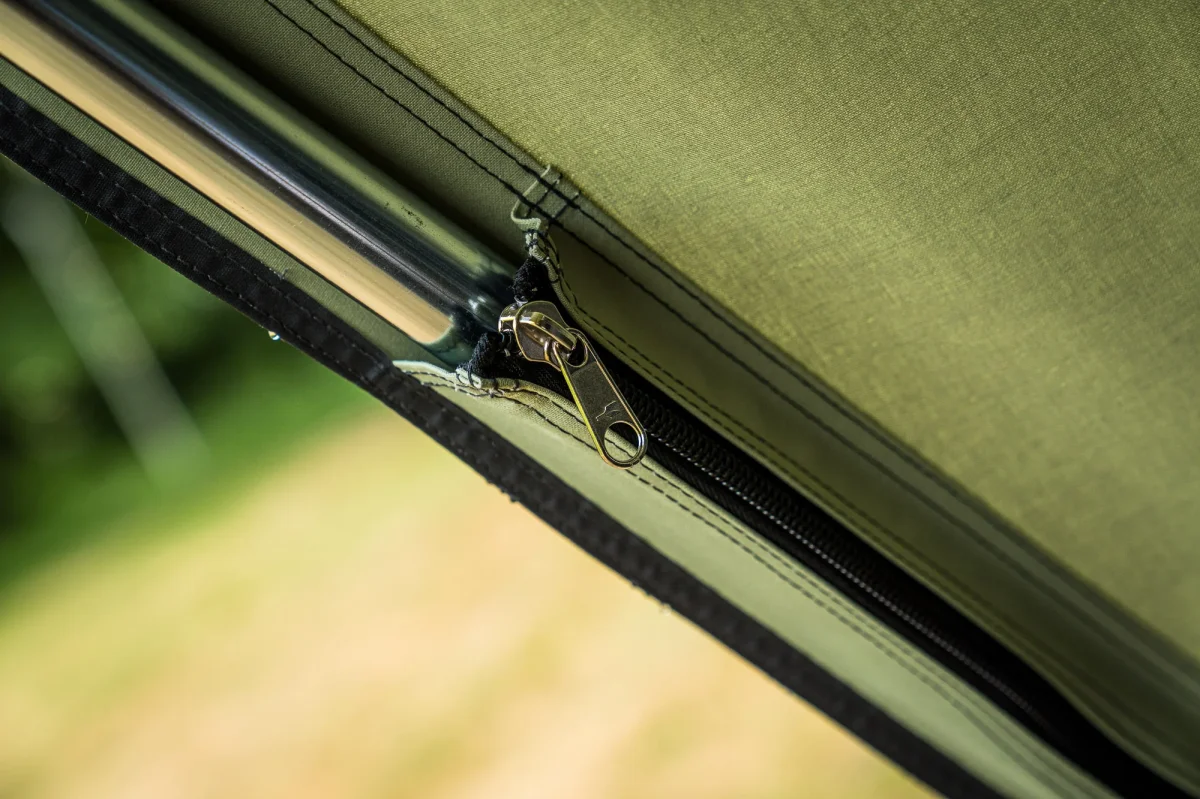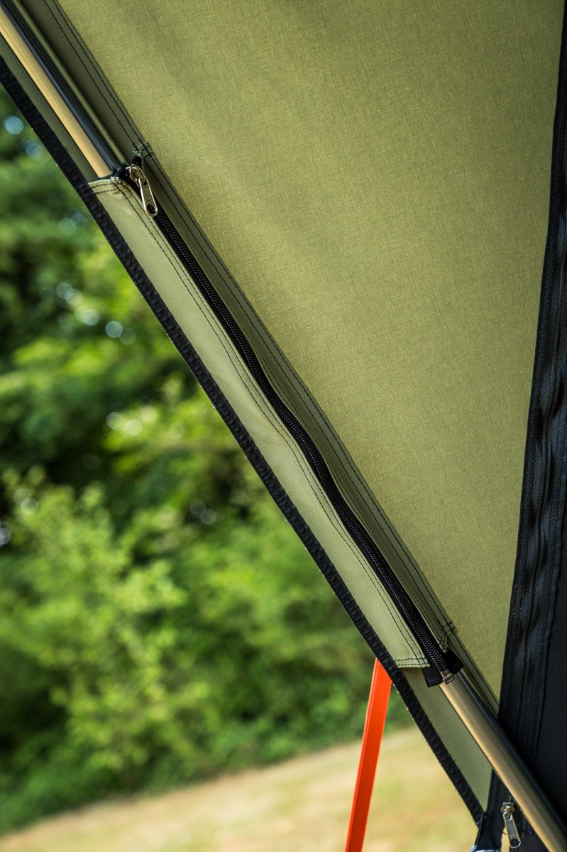 De nieuwe grote ramen zorgen voor maximale lichtinval. Zo kun je optimaal genieten van de omgeving en haal je de natuur echt naar binnen. Ook de luifel heeft een upgrade gehad, is eenvoudig op te zetten en heel stabiel door de aangenaaide tunnels. Hierdoor is het frame stevig ingeritst en blijft goed op zijn plek. Uit de wind of de zon zit je heerlijk beschut onder de luifel.
