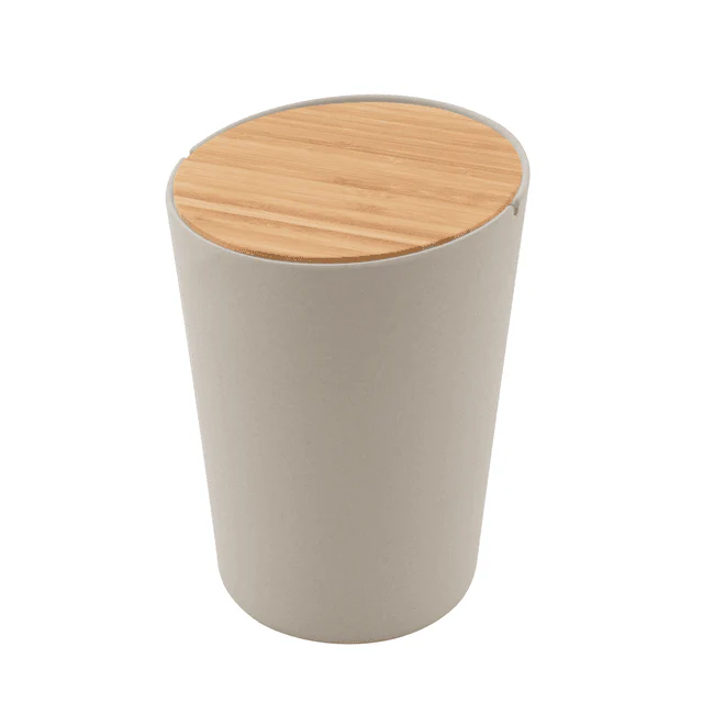 Deze stijlvolle vuilbak, gemaakt van bamboevezel en voorzien van een elegant bamboe deksel, is een ideale keuze voor gebruik in campers en caravans. Gemaakt van bamboe, een onuitputtelijke natuurlijke bron, biedt deze vuilbak duurzaamheid en een milieuvriendelijke optie voor afvalbeheer onderweg.