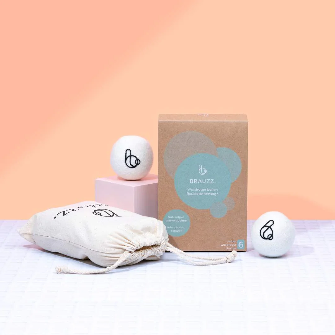 Ontdek het gemak van de Brauzz wasdroger ballen – een set met 6 wolballen die elke droogbeurt een natuurlijke boost geven!