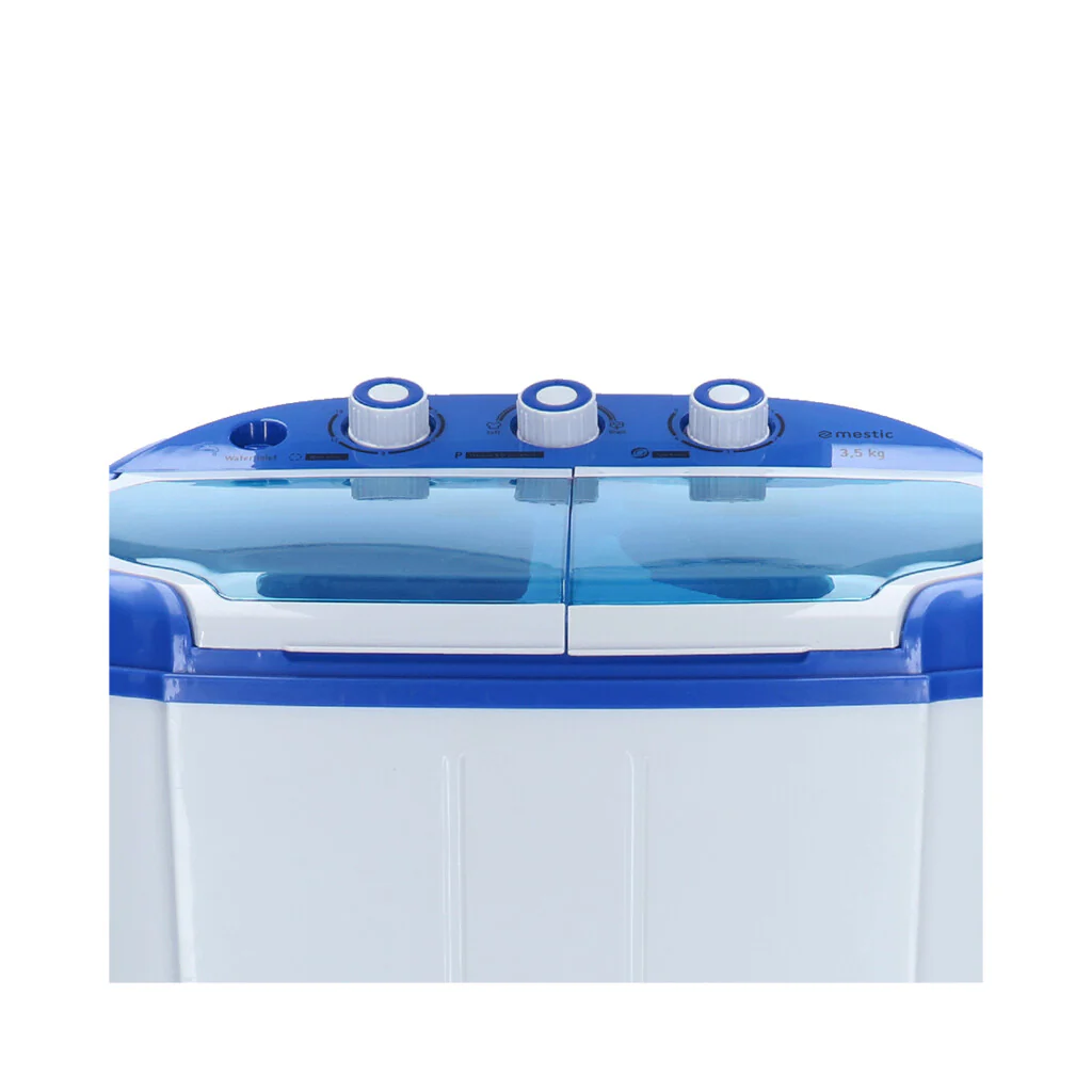 De Mestic wasmachine centrifuge MW-120 werkt op basis van een pulsator. De motor bevindt zich onderin de wastrommel en drijft het water aan. De waterstroom zorgt ervoor dat de kleding (maximaal 3,5 kg) in de trommel beweegt. De wasmachine beschikt over twee wasprogramma’s: fijne en normale was. Kies het gewenste programma en voeg zelf wasmiddel toe. Jouw kleding is in een mum van tijd schoon. Vervolgens kun je jouw natte was met een gewicht van maximaal 1,5 kg uitwringen in de centrifuge. Dit verkort de droogtijd van jouw kleding aanzienlijk. Deze wasmachine/centrifuge combinatie is ideaal voor wanneer je op vakantie gaat. Hij is licht in gewicht, compact én energiezuinig.